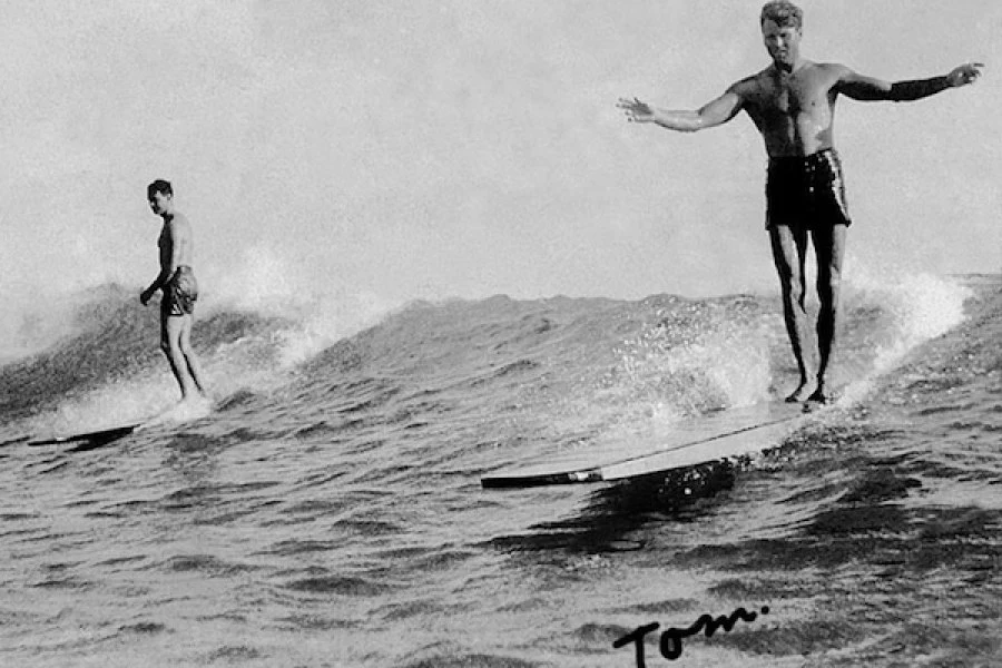 Tom Blake explica essa condição como ninguém, além de surfista nos anos 20, foi salva vidas, escritor, nadador olímpico, chegou a fazer de duplo a Clark Gable em Hollywood, professor universitário, amigo próximo do lendário Duke, homem sem dúvida invulgar talvez o pai do que chamamos “o estilo de vida do surfista atual.” A “sua teoria a Natureza é Deus” defende que o oceano foi o lugar onde a vida começou e o ato de surfar permite a conexão com essa memória viva de estarmos onde a vida começa.