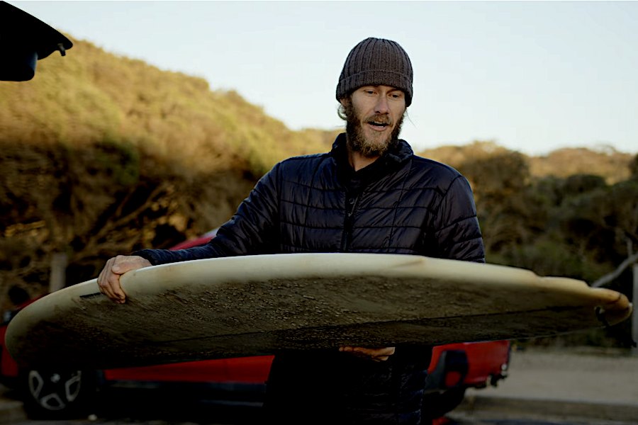 O filme documenta o reencontro de Torren com uma prancha histórica — uma 7’9” twin fin com fundo em canais, desenhada originalmente por Simon Jones, shaper da Simon Jones Designs.