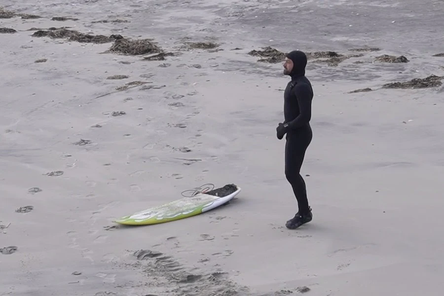 No vídeo, intitulado “Freezing 32° Water & Bombing Surf in New Jersey”, o surfista norte-americano entra no mar equipado com um fato 7/5 mm, solução praticamente “de guerra” para aguentar o choque térmico e passar tempo suficiente na água para aproveitar as melhores séries do dia.