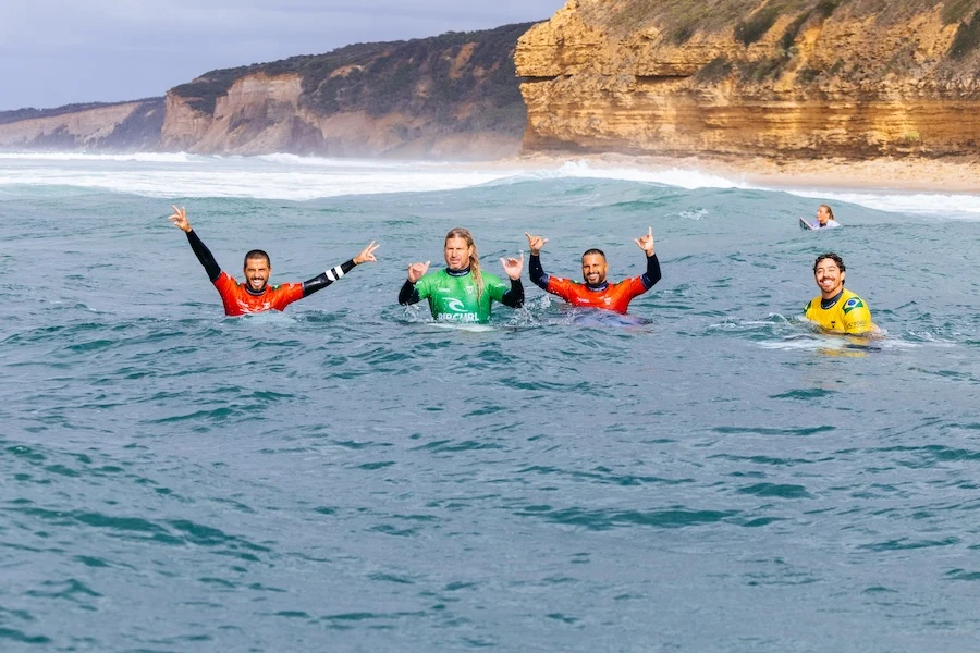 Dentro de água estiveram vários campeões do mundo, entre eles Kelly Slater, Stephanie Gilmore, Carissa Moore, Filipe Toledo e Italo Ferreira, num momento simbólico que juntou passado, presente e futuro da modalidade.