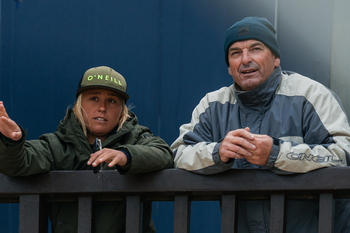 Yolanda e o John o seu treinador a observar o mar antes do heat. Poullnetot/ WSL