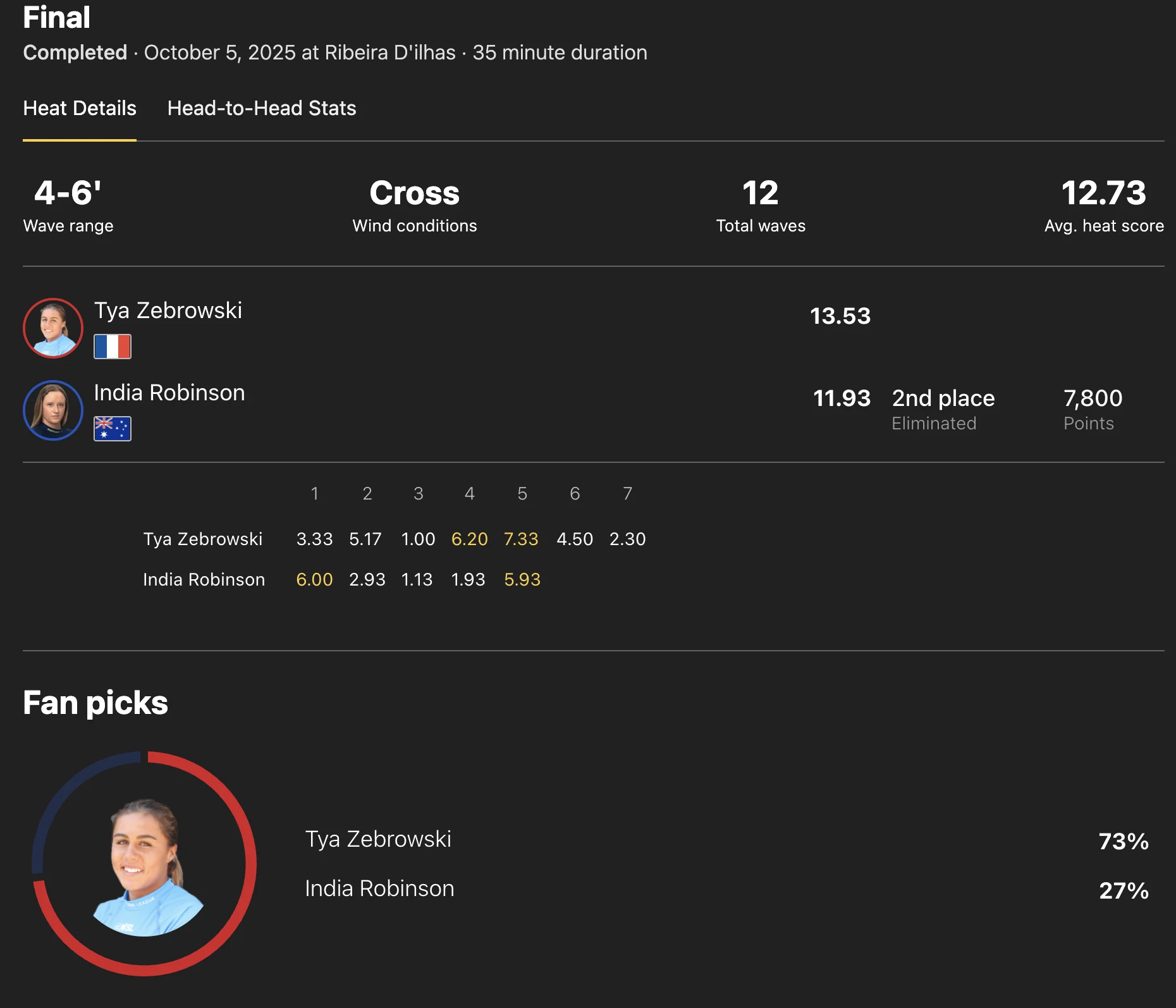 Com uma exibição simplesmente dominante, Tya tornou-se a surfista mais jovem de sempre a vencer uma etapa do circuito Challenger Series, reforçando a liderança no ranking e praticamente assegurando a qualificação para o Championship Tour (CT) de 2026.