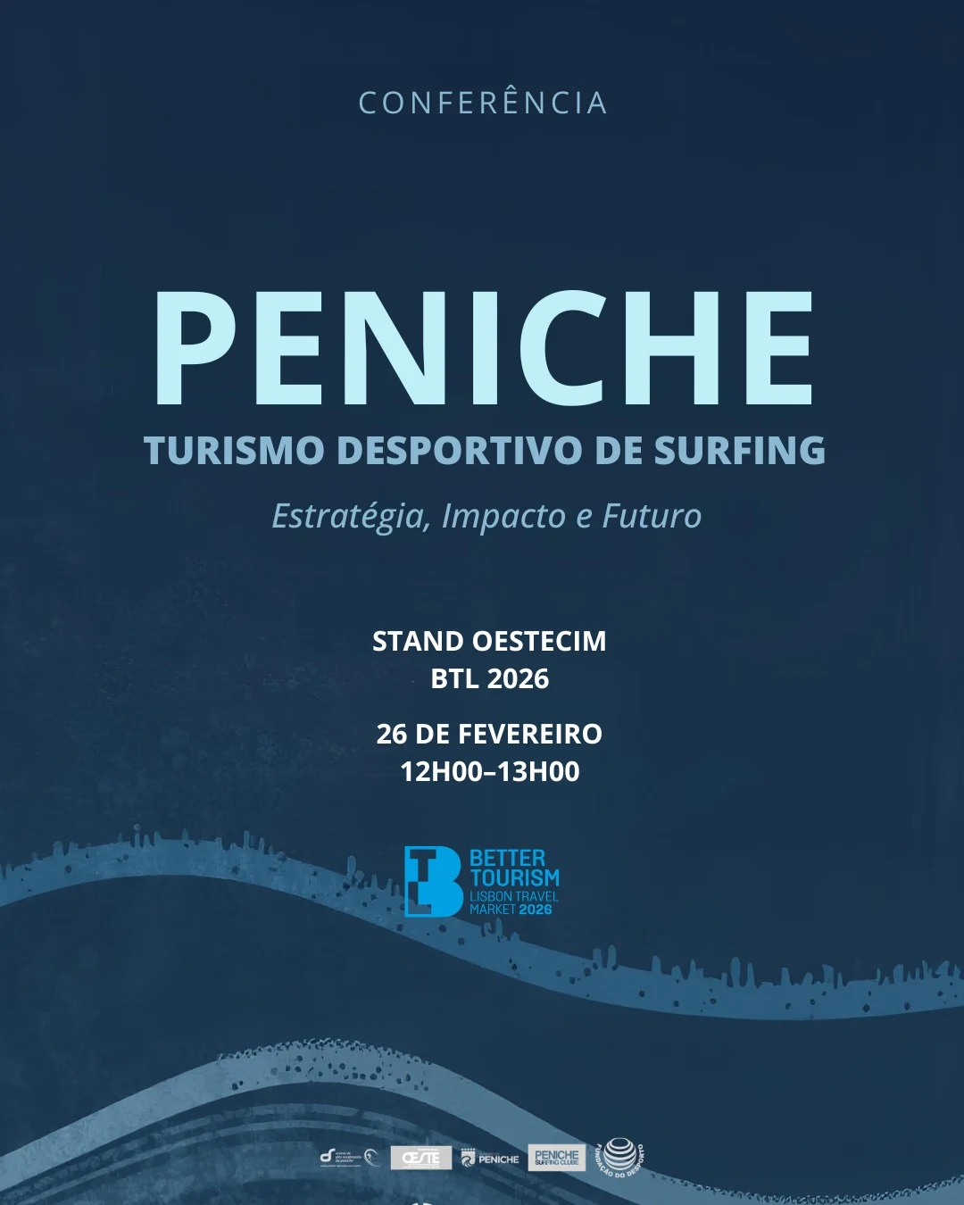 É já amanhã que o Centro de Alto Rendimento de Peniche promove, no próximo dia 26 de fevereiro, uma conferência de alto nível sobre "Turismo Desportivo de Surfing". O evento, que terá lugar na BTL - Bolsa de Turismo de Lisboa (12h00, Stand da Oestecim), propõe uma reflexão estratégica sobre o impacto económico e o futuro de Peniche como destino de surf mundial e é uma coorganização da Oeste CIM, Câmara Municipal de Peniche e Peniche Surfing Clube.