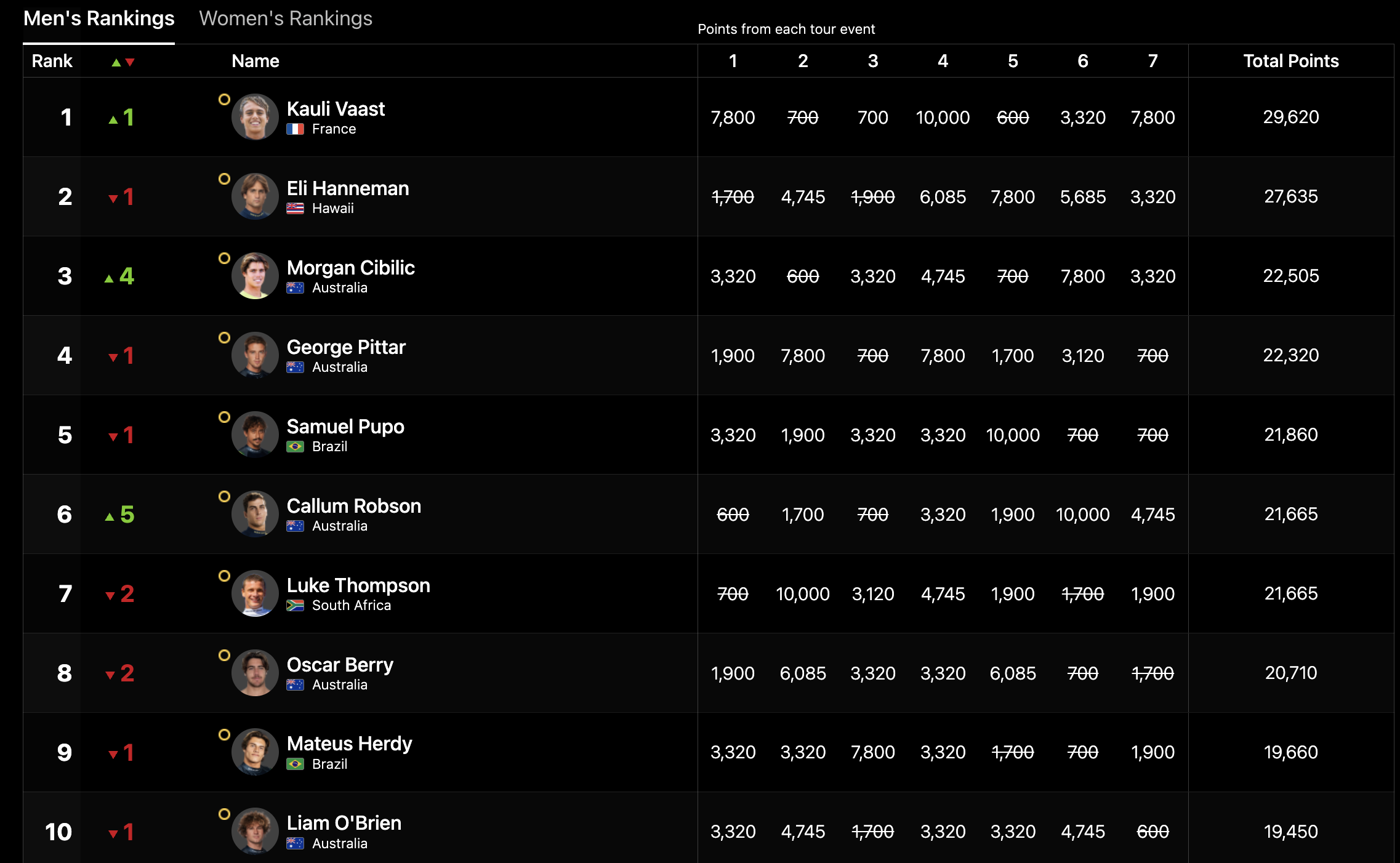 No lado masculino, a última vaga foi para Liam O’Brien, que viveu uma das histórias mais improváveis da etapa. O australiano entrou em Newcastle no 9.º lugar do ranking, mas foi eliminado logo no primeiro heat e ficou durante quase toda a prova dependente dos resultados dos outros.