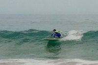 Maior susto? É engraçado, o maior susto que tive foi aqui na Praia de Matosinhos na baia, que até é muito calmo mas naquele dia estava grande e até abri o lábio, até agora foi o meu maior susto, um “sustinho”