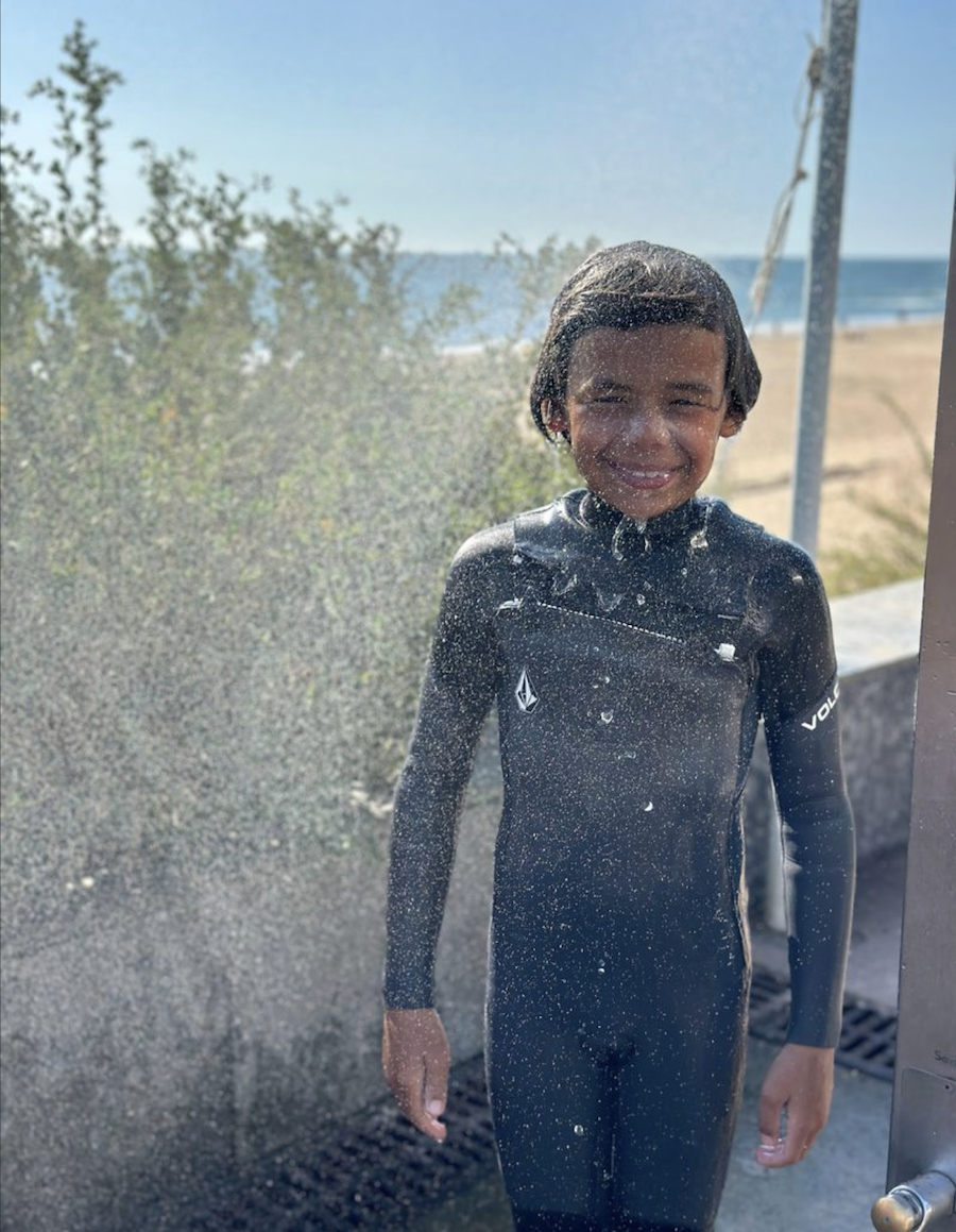 “Gosto de estar com o meu pai à espera das ondas e apanhá-las sozinho, e também das brincadeiras com os meus amigos dentro de água.”
