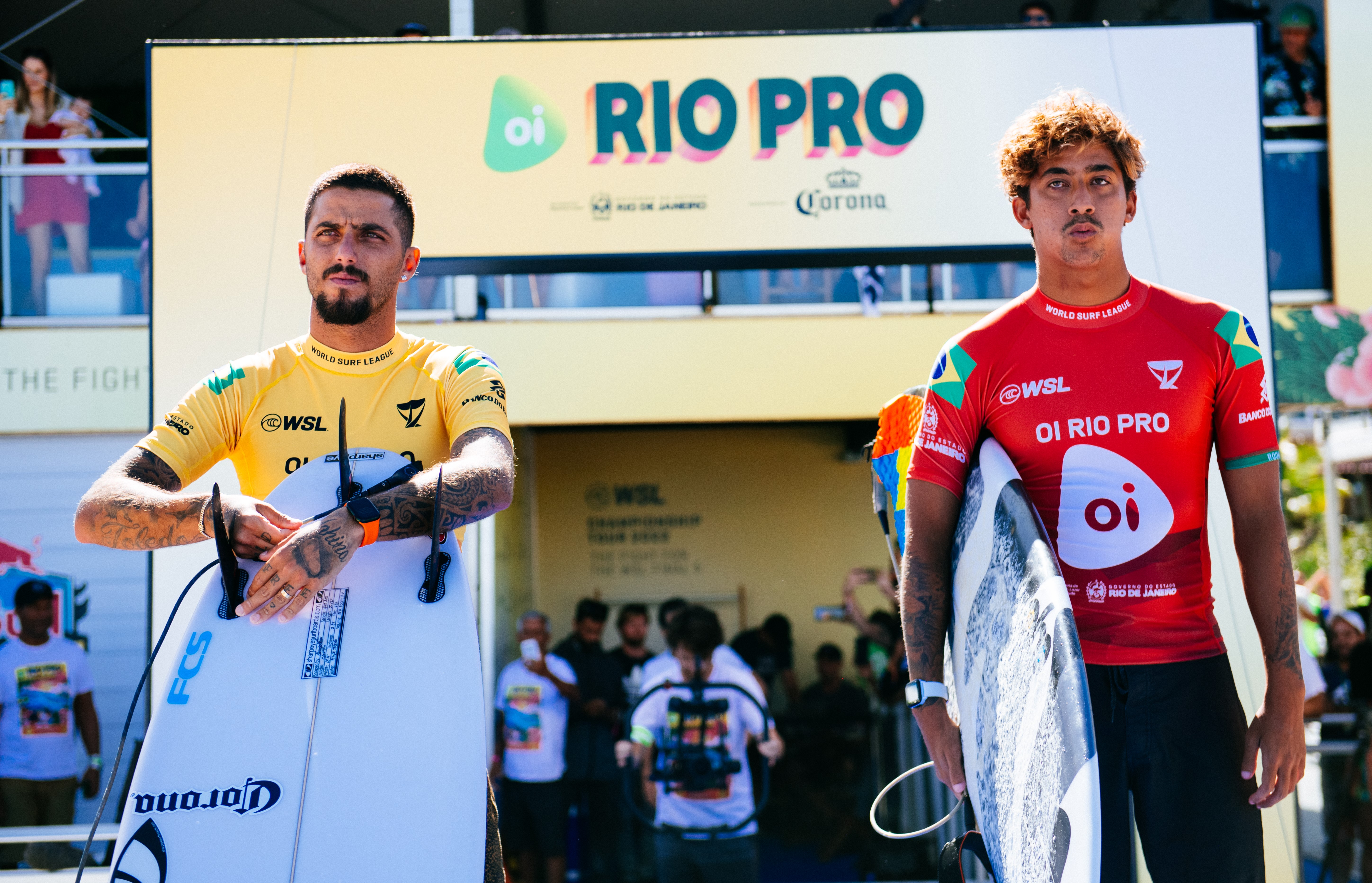Filipe Toledo à esquerda e Samuel Pupo à direita | Créditos de imagem: Thiago Diz/WSL