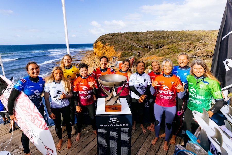 Dentro de água estiveram vários campeões do mundo, entre eles Kelly Slater, Stephanie Gilmore, Carissa Moore, Filipe Toledo e Italo Ferreira, num momento simbólico que juntou passado, presente e futuro da modalidade.