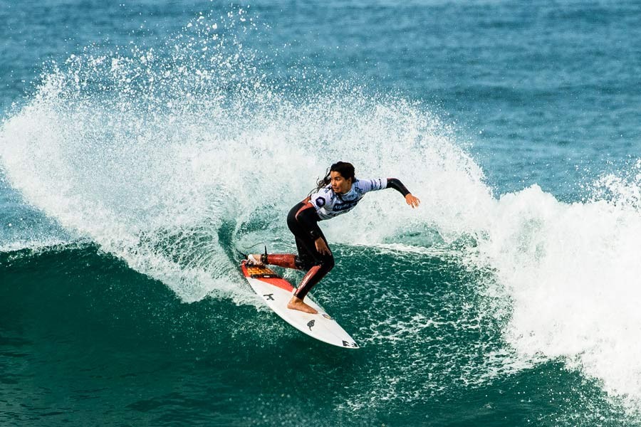 Nas senhoras, a havaiana Tatiana Weston-Webb leva a melhor sobre Mahina Maeda, também do Havai e vice-campeã mundial júnior em 2015, com a norte-americana Caroline Marks, de apenas 14 anos, a surgir no terceiro lugar.