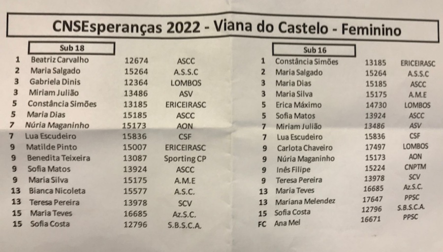 Teresa Pereira, do clube anfitrião, ficou em nono em Sub 16 e em 13º em Sub 18.