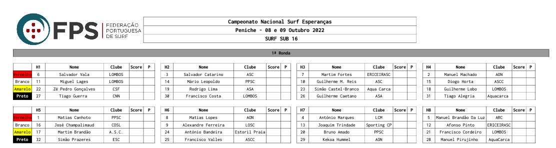 Os 32 melhores surfistas Sub 16 de Portugal, que se apuraram nos vários campeonatos regionais que se realizaram nas cinco regiões do país nos primeiros quatro meses do ano, onde se incluem nomes como os Matias Canhoto Bruno Amado e Mário Leopoldo, competem pelo título de campeão nacional.