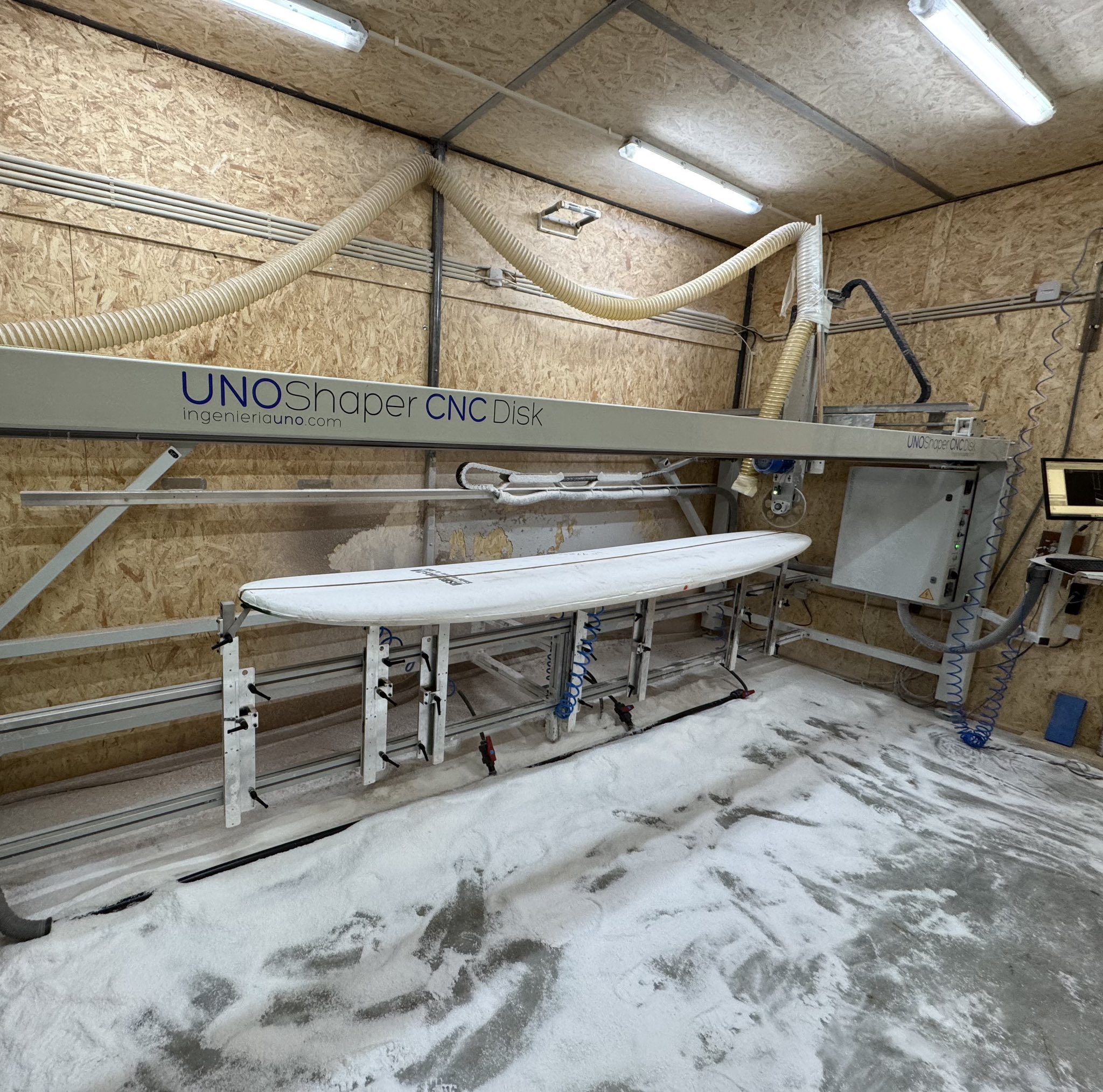 Inclui máquina CNC DiskCNC Unoshaper, sistemas de extração e ventilação, redes de ar comprimido, ferramentas profissionais e todos os elementos necessários ao processo de shape, laminação, lixagem e pintura;