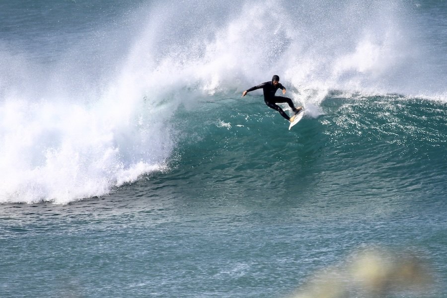 Alguns spots virados a Sul — protegidos do Norte — também beneficiam com mar mais ordenado