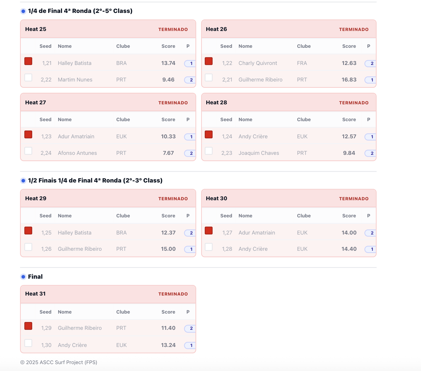 Destaque para performances de alto nível de Gui Ribeiro, (16,83 pontos em 20 possíveis)Halley Batista (13.74), Charly Quivront (12.63), Andy Crière (12.57) e Adur Amatriain (10.33).