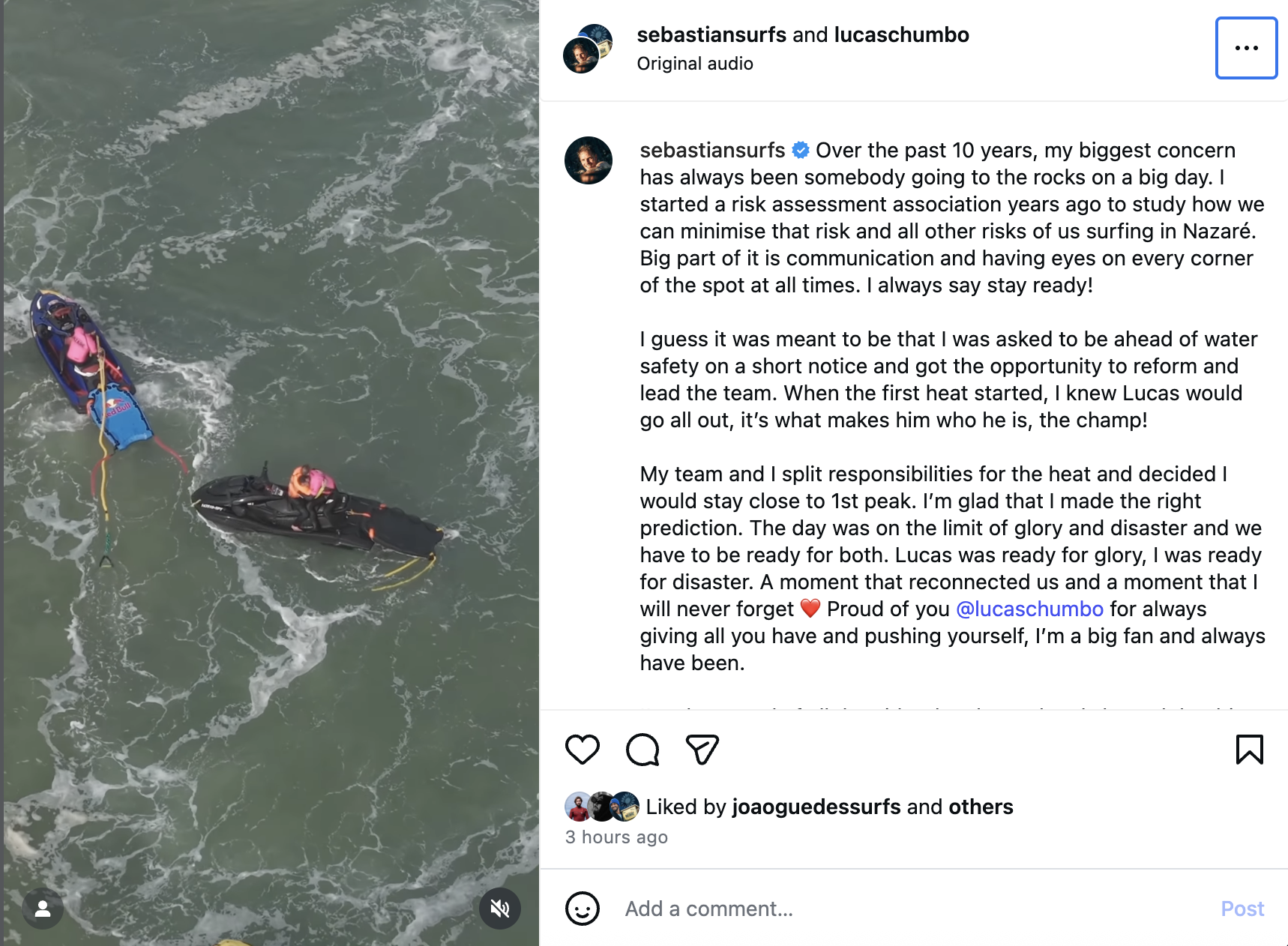 Num evento marcado por decisões difíceis, condições extremas e riscos reais, o testemunho de Sebastian Steudtner oferece um olhar raro e esclarecedor sobre o que está por detrás do espetáculo — onde a segurança, a antecipação e o trabalho de equipa são tão decisivos quanto a coragem de enfrentar algumas das maiores ondas do planeta.