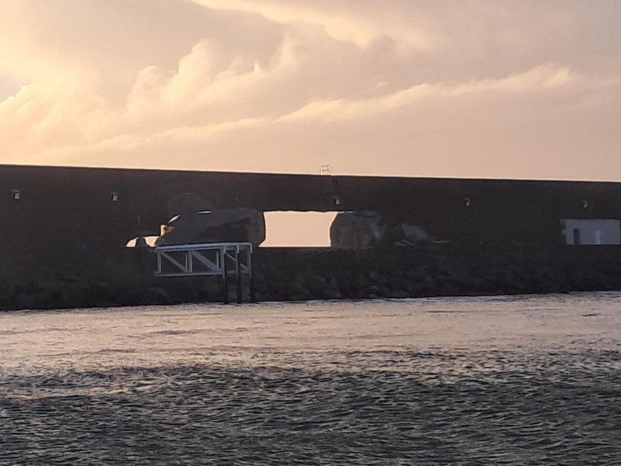 A ocorrência foi detetada através das câmaras da SurfTotal, que mostram claramente a falha estrutural no paredão, numa zona exposta à agitação marítima intensa registada nos últimos dias.