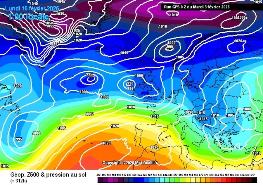 O modelo americano (GFS) antevê a subida em latitude do anticiclone dos Açores em torno de meados de fevereiro / Meteociel.fr