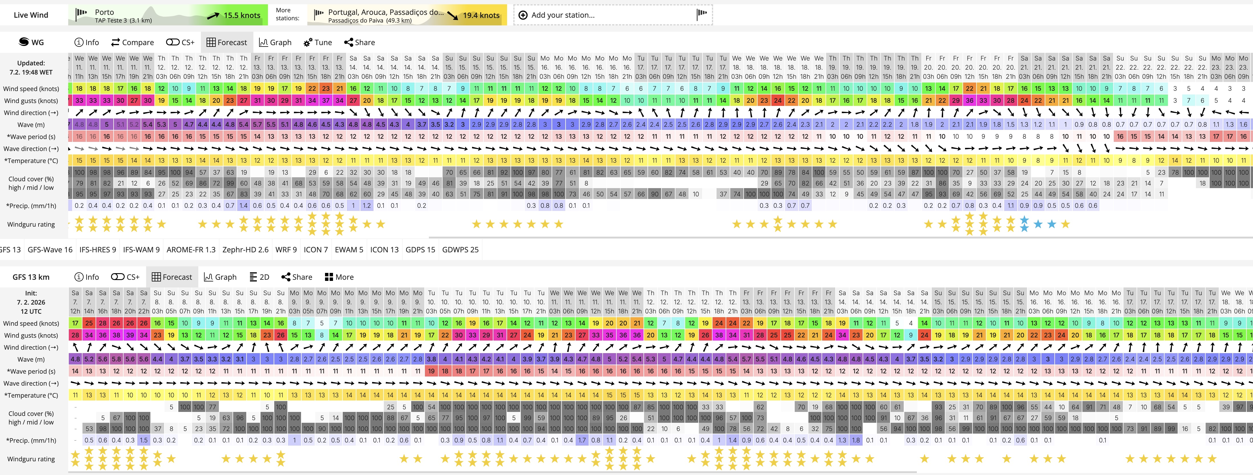 Previsão Windguru é favorável a partir de Sábado, dia 21 de Fevereiro