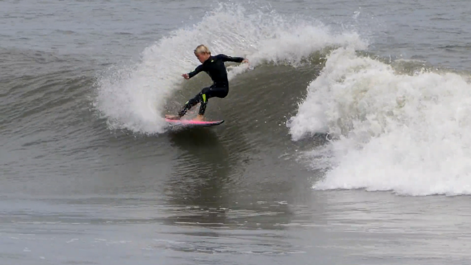 Este pequeno surfista demonstra ter os ingredientes para se tornar numa superpotência do surf americano, tendo já um versátil repertório de manobras e uma abordagem fora de série.